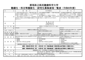 聴講生等募集要項一覧表(R8学部)