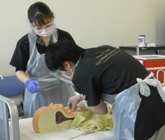 2019年度から本格的に準備を進め、2020年2月26日付けで特定行為に係る看護師の研修制度の指定研修機関として指定され、2020年4月から研修課程を開始しました。特定行為区分の選択にあたっては、県内において最も必要であると考えられる特定行為を検討し、「呼吸器(長期呼吸療法に係るもの)関連」「栄養及び水分管理に係る薬剤投与関連」の2区分3行為を選択しました。さらに、2023年度から「血糖コントロールに係る薬剤投与関連」の1区分1行為を追加しました。