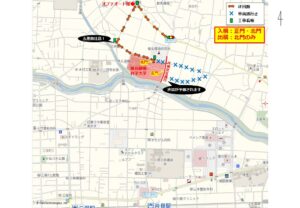 ・周辺道路の一部は車両通行止めとなっていますので、北門からの出入りにあたっては、下図の迂回路をご利用ください。