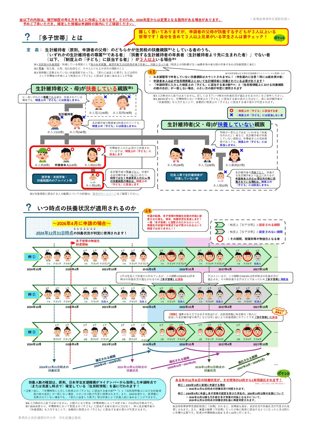 群馬県立県民健康科学大学 > お知らせ > 多子世帯に対する大学等の授業料等無償化について