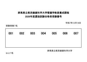 2026年度看護学教員養成課程選抜試験合格者受験番号の掲載について